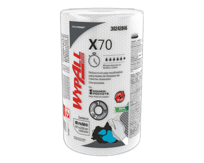Paños de limpieza WypAll X70 Rollo Regular con Power Pockets.