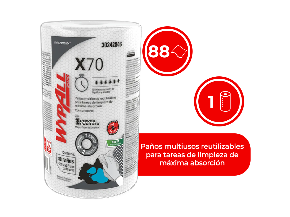 Paño Industrial WypAll X70 Rollo Regular con Power Pockets