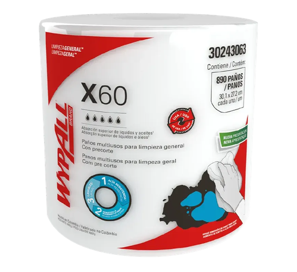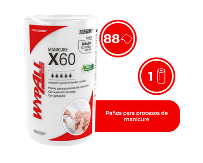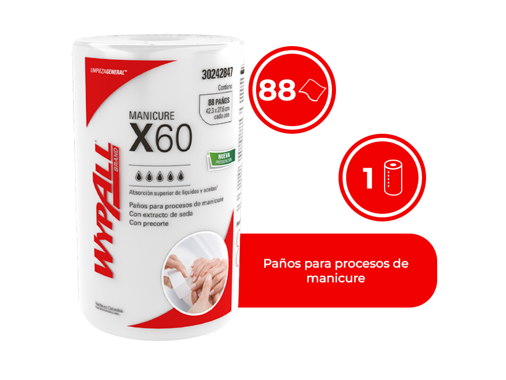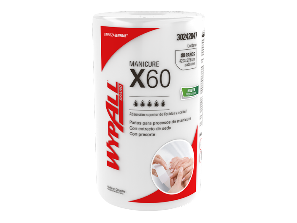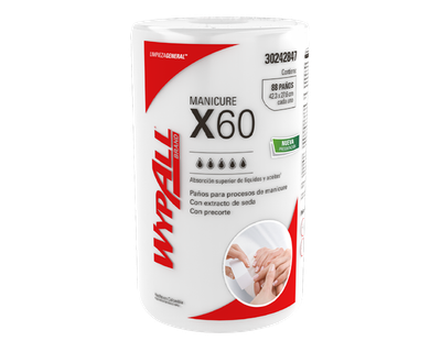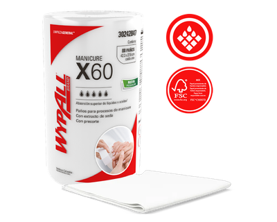 Los paños de limpieza WypAll X60 Rollo Manicure ofrecen una alta resistencia y absorción de aceites y líquidos livianos, son fabricados con extracto de seda para máxima suavidad.
