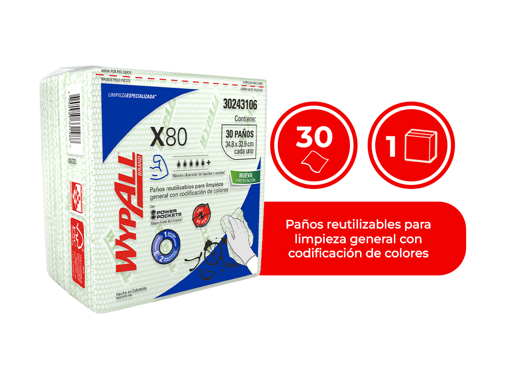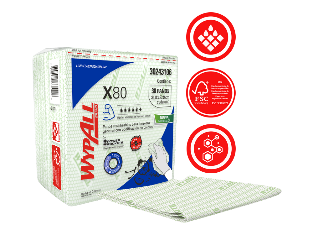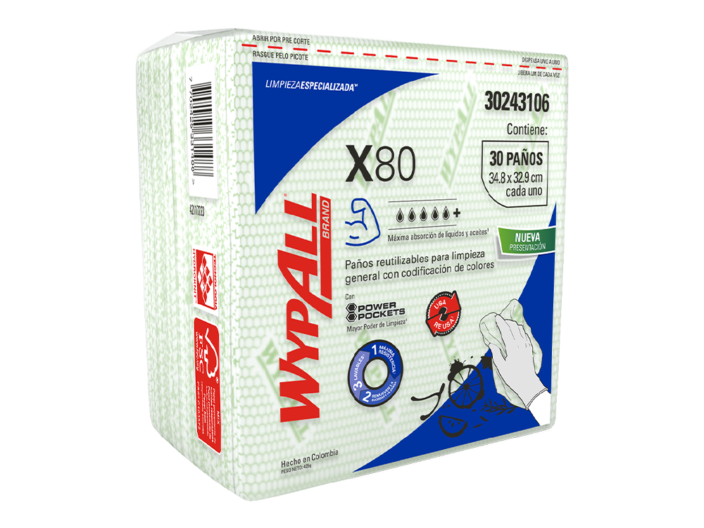 Paños De Limpieza WypAll X80 Plus con Power Pockets - Verde