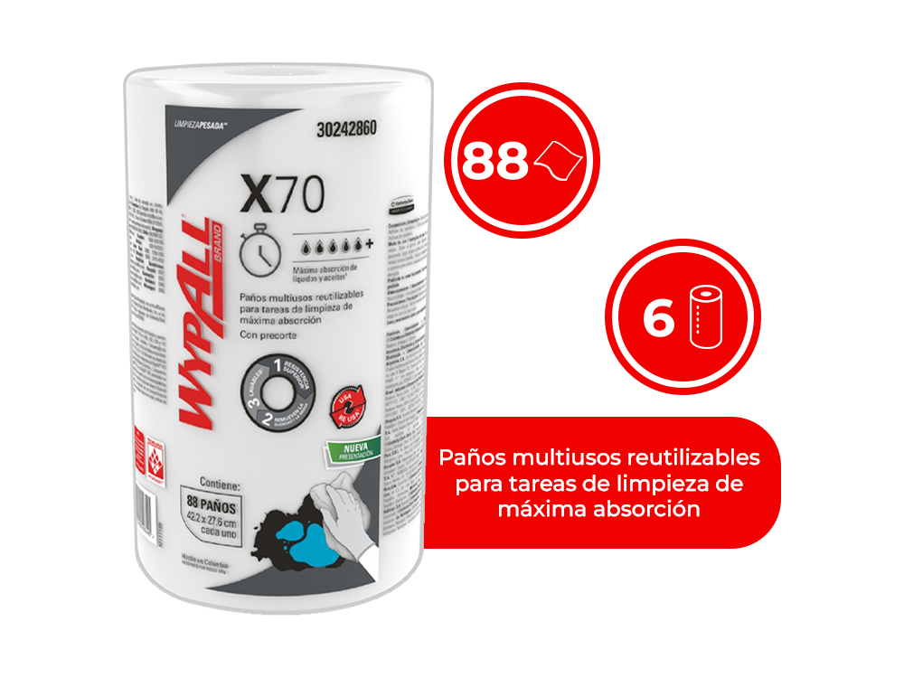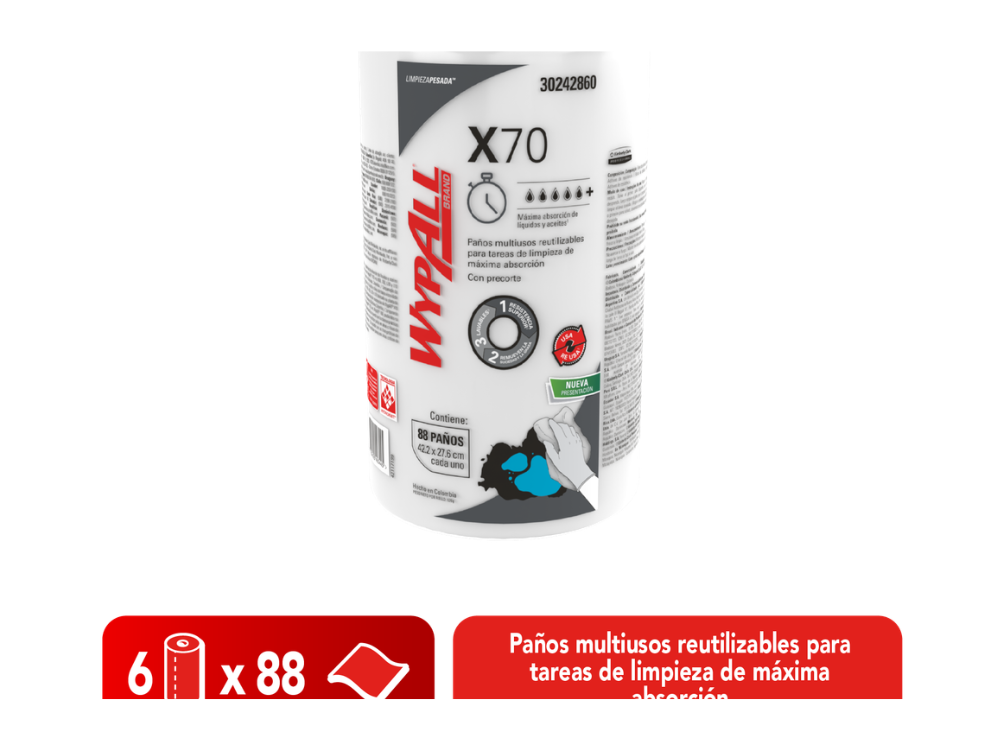 Paños De Limpieza WypAll X70 Rollo Regular x 6 Rollos