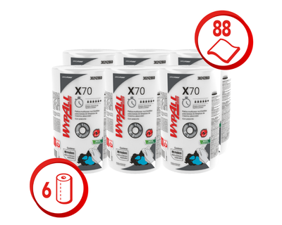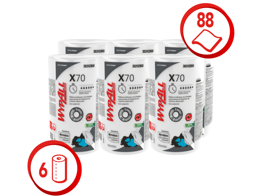 Paquete por 6 unidades de paños de limpieza WypAll X70 Rollo Regular