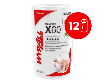 Paquete x 12 paños Wypall X60 Rollo Regular Manicure.