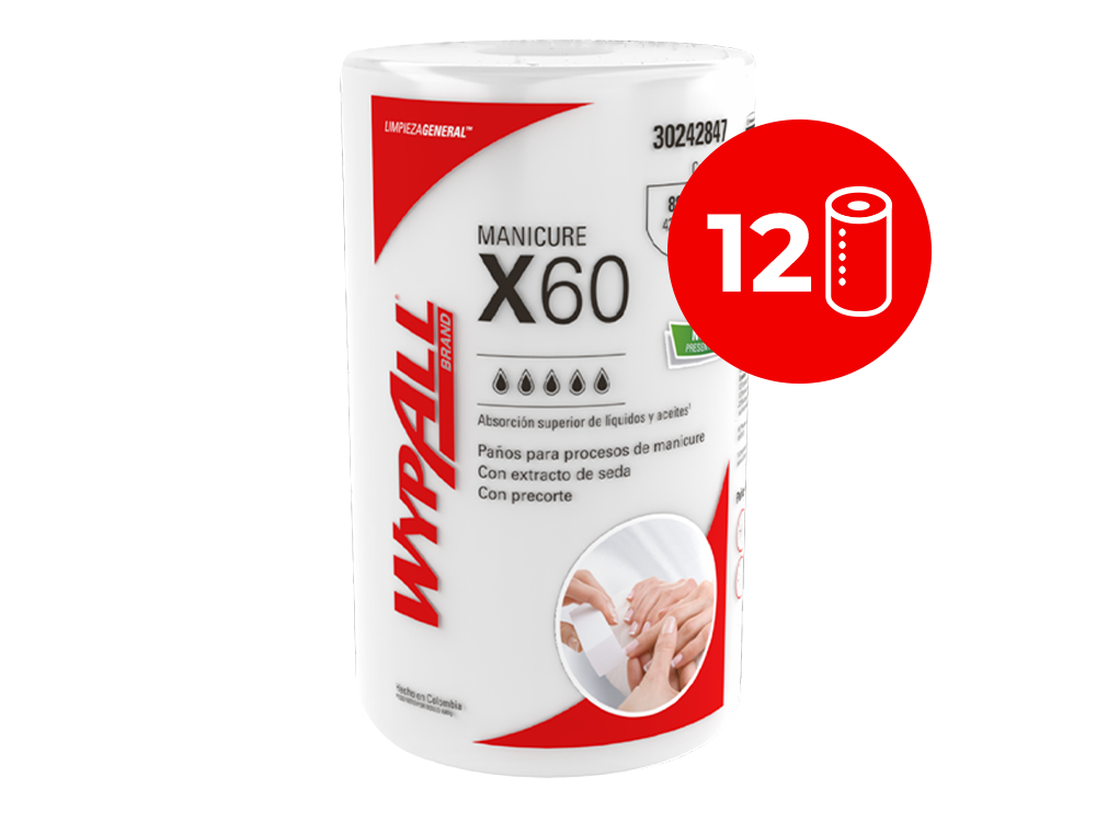 Los paños de limpieza WypAll X60 Rollo Manicure ofrecen una alta resistencia y absorción de aceites y líquidos livianos, son fabricados con extracto de seda para máxima suavidad.