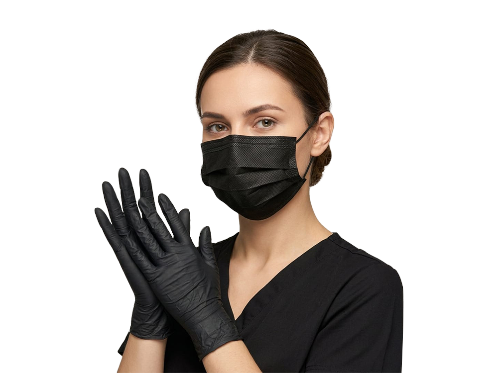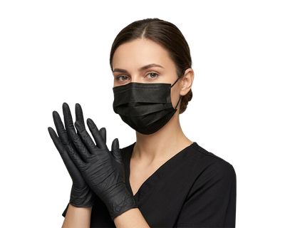 Combo tapabocas triple tela negro clay empaque individual cajax50und + Guante Nitrilo Negro Biofit Talla M X100 Unds