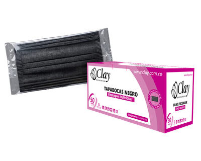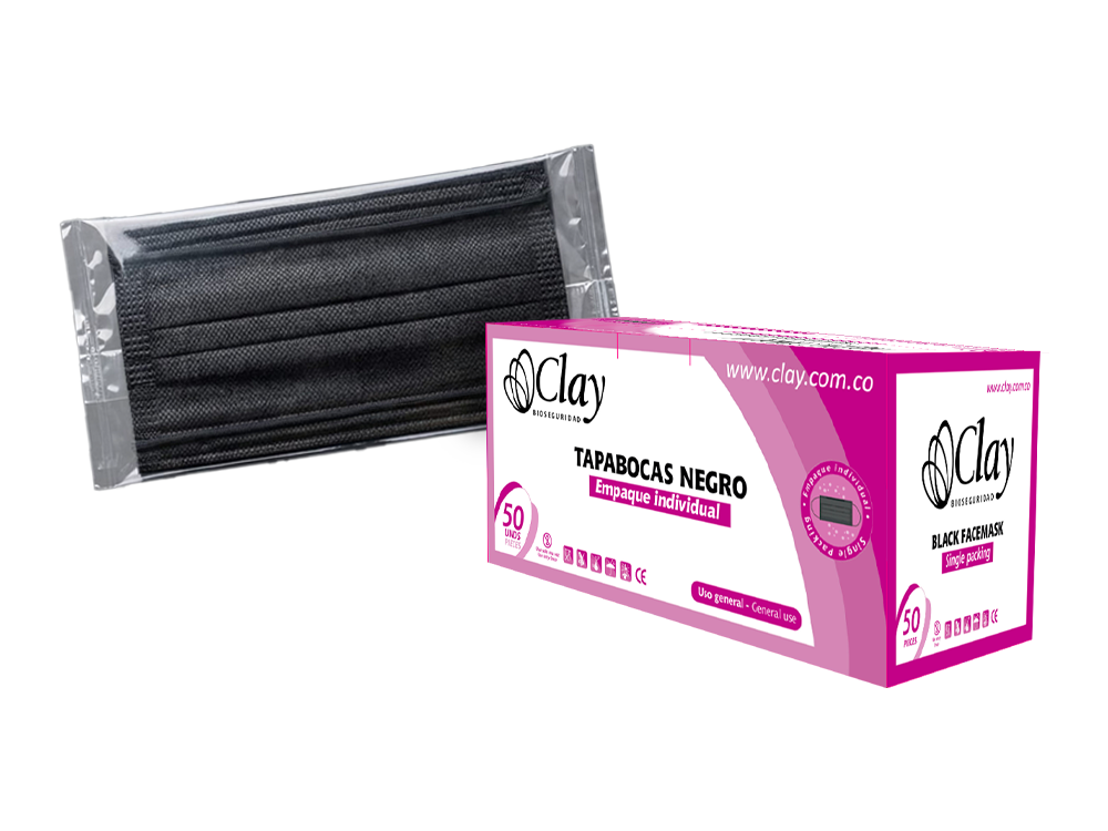 El Tapabocas 3 Capas Negro CLAY con empaque individual x 50 unidades es una solución de protección respiratoria diseñada para entornos industriales, manipulación de alimentos, sector belleza y uso institucional donde se requiere mayor control higiénico gracias a su empaque individual por unidad.
